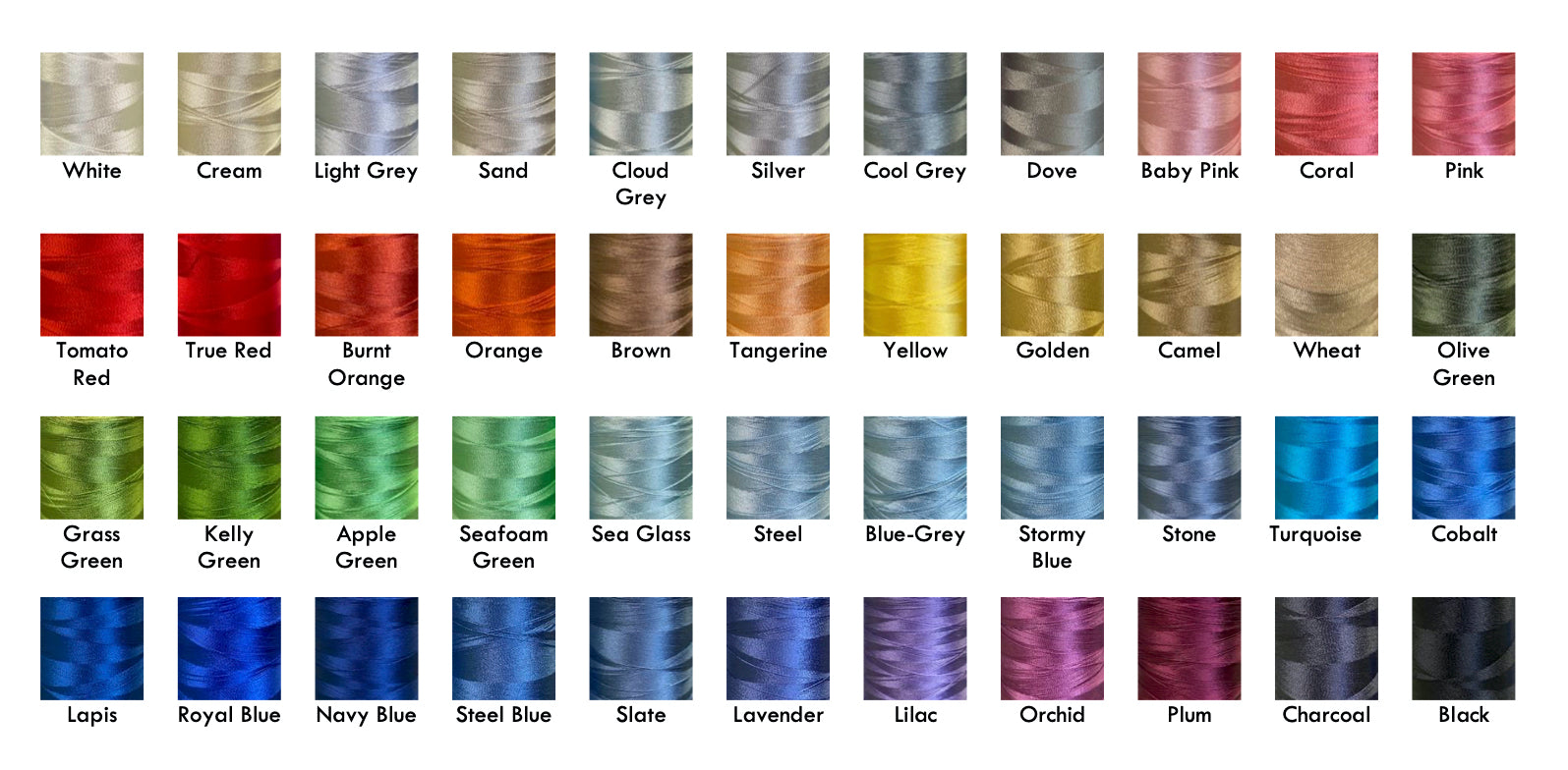 Find the perfect color for you below! Swatches available for both Thread and Vinyl monograms.